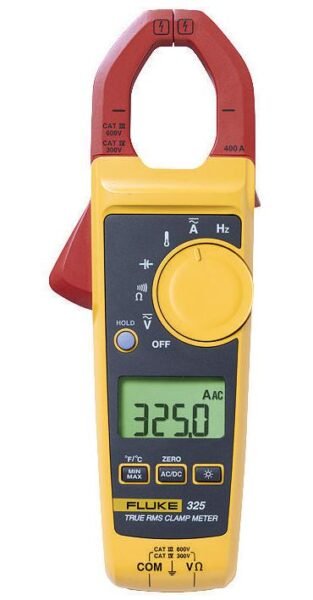 - FLUKE 325 (Versátil): Una pinza True RMS compacta, altamente confiable. Mide hasta 400A AC/DC. Es el caballo de batalla para electricistas comerciales y residenciales que requieren True RMS sin extras innecesarios.