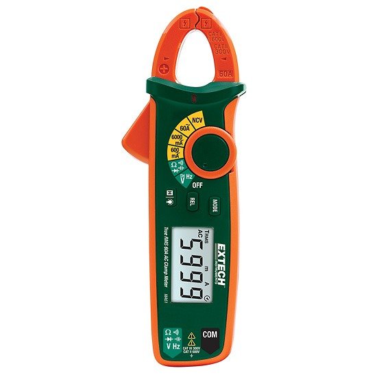 - EXTECH MA61 (Minimétrica): Pinzas compactas para corrientes pequeñas, muy populares por su precisión y portabilidad en trabajos de electrónica y baja tensión.