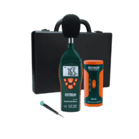El Extech 407732-KIT es un kit de medidor de nivel de sonido tipo 2 completo y preciso que cumple con los estándares ANSI e IEC 651 tipo 2. Es ideal para realizar estudios de ruido en el lugar de trabajo, instalar alarmas contra incendios y sistemas de altavoces, y hacer cumplir las ordenanzas sobre ruido.