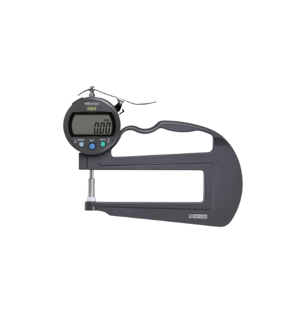El Mitutoyo 547-320A es un calibrador de espesores digital de la Serie 547, diseñado para realizar mediciones rápidas y precisas del espesor de diversos materiales como papel, película, láminas de metal y plástico. Su característica principal es su garganta profunda, que permite medir el espesor en puntos más alejados del borde del material, lo cual es una ventaja significativa sobre los calibradores de espesores estándar. Incorpora un indicador Digimatic ABSOLUTE, que garantiza lecturas confiables y elimina la necesidad de ajuste a cero repetitivo. Sus puntos de contacto planos, fabricados en cerámica, son ideales para medir superficies delicadas sin riesgo de rayaduras y ofrecen resistencia al óxido.