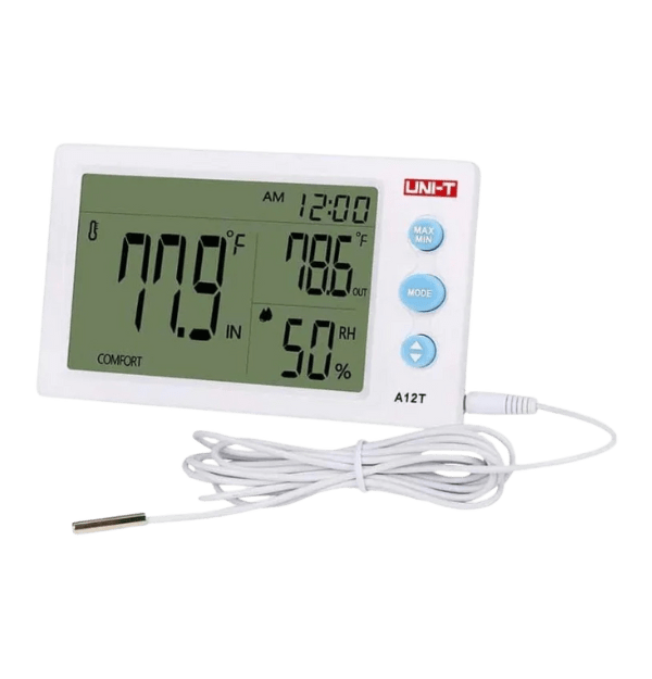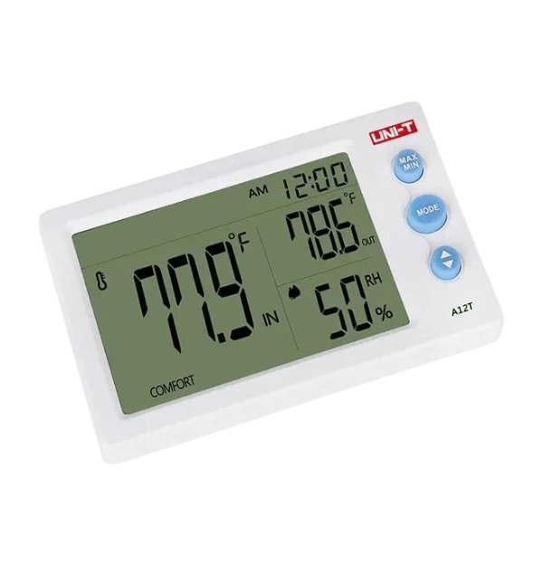 Mantén un ambiente confortable y saludable con el Medidor de Humedad y Temperatura A12T UNI-T. Este dispositivo de alta precisión te permite monitorear las condiciones climáticas en tu hogar, oficina o cualquier otro espacio interior o exterior.