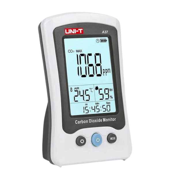 Monitoree la calidad del aire en su hogar, oficina o escuela con el Medidor de CO2 UNI-T A37. Este dispositivo compacto y fácil de usar mide la concentración de dióxido de carbono (CO2), la temperatura y la humedad relativa, brindándole información esencial para mantener un ambiente interior saludable.