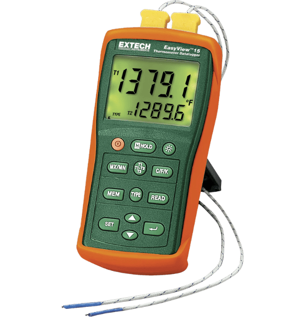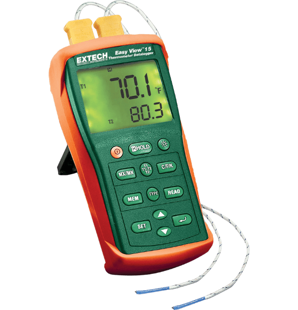 El termómetro digital EA15 de Extech es un dispositivo versátil y preciso que permite medir y registrar temperaturas en una amplia gama de aplicaciones. Con su doble entrada para termopares, amplio rango de temperatura y memoria de gran capacidad, este registrador de datos es ideal para una variedad de usos, incluyendo: