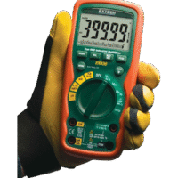 El EX530 de Extech es un multímetro digital de verdadero valor eficaz (RMS) diseñado para trabajos pesados en entornos hostiles. Cuenta con una clasificación de seguridad CAT IV 600V y CAT III 1000V, una carcasa resistente al agua y a prueba de golpes con clasificación IP67, y una amplia gama de funciones de medición para aplicaciones industriales y comerciales.