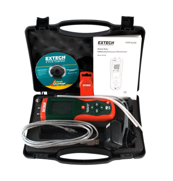 El manómetro de presión diferencial HD700 de Extech es un instrumento versátil y preciso diseñado para medir la presión diferencial en una amplia gama de aplicaciones. Con su rango de medición de hasta 2 psi y 11 unidades de medida seleccionables, este manómetro es ideal para una variedad de tareas, incluyendo: