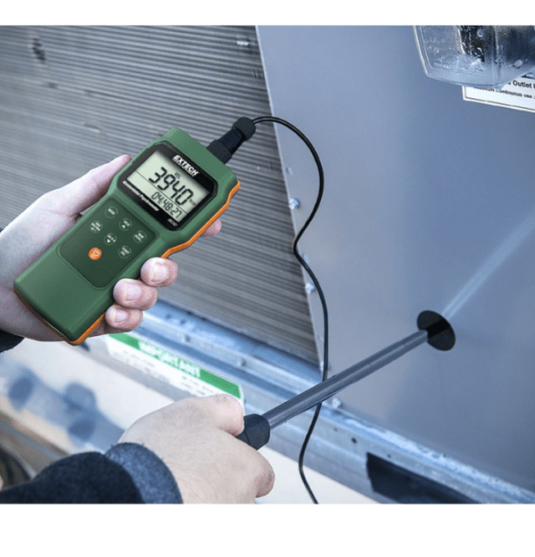 El Psicrómetro Termohigrómetro de Entrada Doble RH350 de Extech es un instrumento profesional diseñado para medir con precisión la humedad relativa, la temperatura, el punto de rocío y el bulbo húmedo en una variedad de entornos.