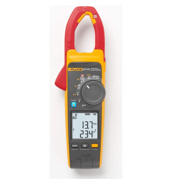 La Fluke 377 FC es una pinza amperimétrica de verdadero valor eficaz (True-RMS) diseñada para medir corriente de manera rápida y segura sin contacto físico, ideal para solucionar problemas en sistemas eléctricos de CA/CC. Una de sus características más destacadas es la tecnología FieldSense™, que permite medir la tensión y la corriente simultáneamente a través de la mandíbula de la pinza, eliminando la necesidad de usar cables de prueba. Esto aumenta la seguridad y la eficiencia para los profesionales de mantenimiento industrial y electricistas.