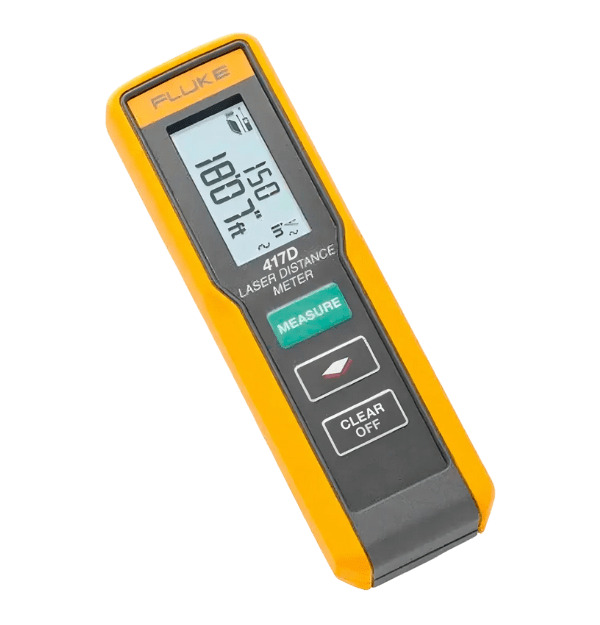 - Versatilidad: El Fluke 417D ofrece una variedad de funciones, incluyendo el cálculo de áreas y volúmenes, mediciones de Pitágoras y almacenamiento de las últimas 10 mediciones.