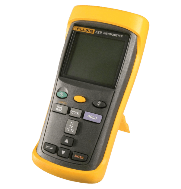 El Fluke 52-II es un termómetro digital de doble entrada de alta precisión y respuesta rápida, diseñado para aplicaciones industriales y profesionales. Ofrece una amplia gama de funciones y características que lo convierten en una herramienta esencial para técnicos, electricistas, HVAC y otros profesionales que necesitan mediciones de temperatura precisas y confiables.