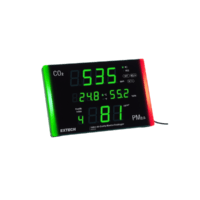El EXTECH IAQ320 es un medidor multifunción avanzado diseñado para una evaluación integral de la calidad del aire interior (IAQ). Este dispositivo portátil y robusto mide simultáneamente seis parámetros ambientales esenciales: dióxido de carbono (CO₂), monóxido de carbono (CO), temperatura, humedad relativa, punto de rocío y bulbo húmedo. Además, calcula el índice de confort térmico WBGT (Wet Bulb Globe Temperature), proporcionando una evaluación más completa de las condiciones ambientales. Su gran pantalla LCD retroiluminada permite una lectura clara de todos los parámetros a la vez, y su capacidad de almacenamiento interno facilita el registro y la recuperación de datos para análisis posteriores. El IAQ320 cuenta con alarmas ajustables para CO₂ y CO, indicando visual y audiblemente cuando se exceden los umbrales preestablecidos. Su diseño intuitivo y su funcionamiento con pilas o adaptador de CA lo hacen ideal para profesionales que necesitan realizar mediciones precisas y exhaustivas en diversos entornos interiores.
