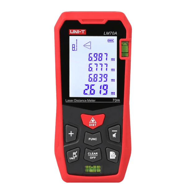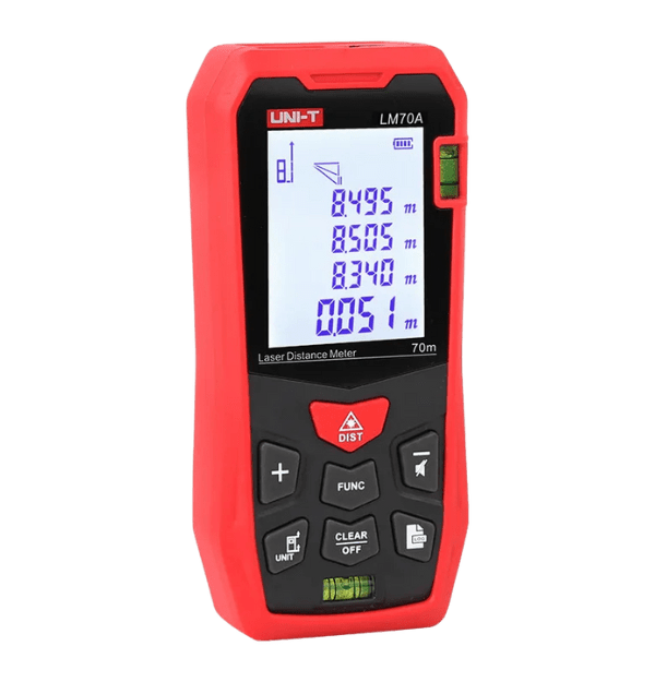 El Medidor de Distancia Láser UNI-T LM70A es una herramienta portátil y precisa para medir distancias, áreas y volúmenes. Con un alcance de hasta 70 metros y una precisión de ±(2 mm + 5 x 10^-5 D), este medidor es ideal para una amplia gama de aplicaciones, incluyendo: