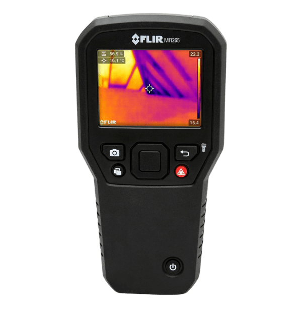 El FLIR MR265 es un higrómetro e imagen térmica multifuncional diseñado para profesionales de la construcción, inspectores de viviendas y técnicos de mitigación de humedad que necesitan una herramienta integral para identificar y cuantificar problemas de humedad y fugas de aire. Este dispositivo combina una cámara termográfica de 160 x 120 píxeles con un sensor de humedad pin y pinless, además de un sensor de humedad y temperatura ambiente integrado.