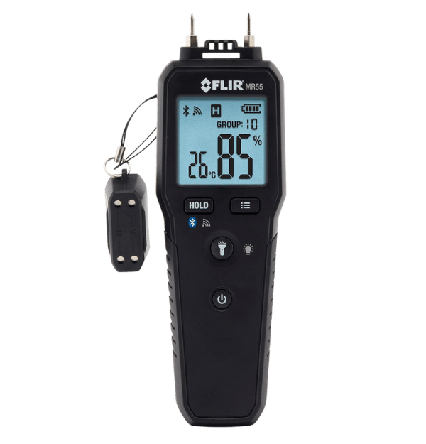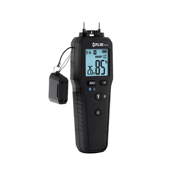 El FLIR MR55 es un medidor de humedad con sensor pin y pinless (no invasivo) diseñado para profesionales de la construcción, inspectores de viviendas y entusiastas del bricolaje que necesitan una herramienta confiable y fácil de usar para identificar y cuantificar la humedad en una variedad de materiales. Este dispositivo compacto ofrece mediciones precisas de humedad para ayudar a prevenir problemas como el crecimiento de moho, la descomposición de la madera y los daños estructurales.