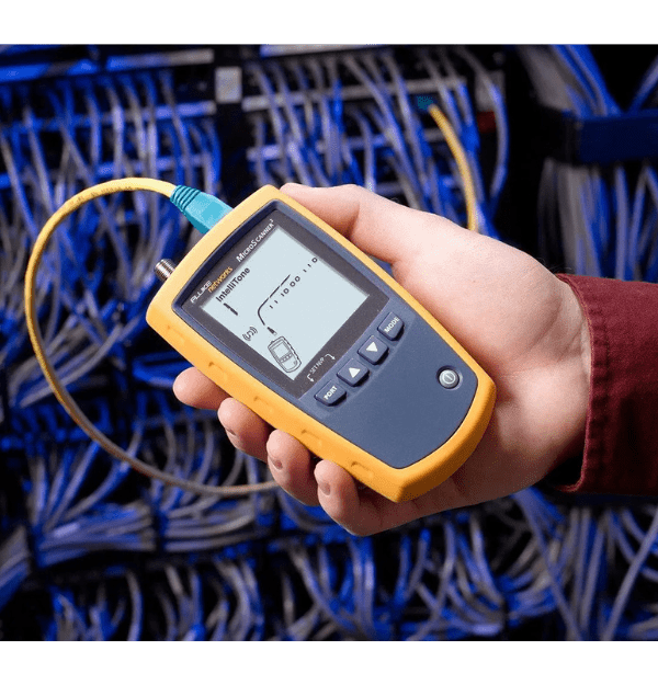 El MicroScanner™2 (MS2-100) de Fluke Networks es una herramienta de verificación de cableado revolucionaria que simplifica la vida de los técnicos de red. Combina las funciones de varios probadores en una sola unidad, lo que permite a los profesionales realizar diagnósticos precisos de forma rápida y eficiente. Su interfaz de usuario intuitiva muestra los resultados de las pruebas de mapeo de cableado, la longitud del cable, la identificación de la red y la distancia a la falla en una sola pantalla, lo que reduce el tiempo de prueba y el margen de error.