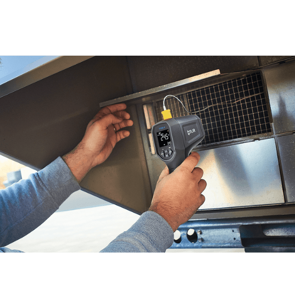 El FLIR TG56-2 es un termómetro infrarrojo de punto diseñado para profesionales que requieren mediciones de temperatura superficial sin contacto con un rendimiento mejorado y características avanzadas. Este termómetro ofrece un amplio rango de temperatura infrarroja de -30 °C a 1050 °C (-22 °F a 1922 °F) y una relación de distancia al punto de 30:1, lo que permite mediciones precisas en objetivos más pequeños desde una mayor distancia de seguridad. Incorpora un láser de doble punto para una identificación más precisa del área de medición. Su pantalla a color EBTN de 2.4 pulgadas proporciona una visualización clara de las lecturas y los menús, incluyendo gráficos de tendencias en tiempo real y la capacidad de almacenar hasta 9999 lecturas. Con una clasificación IP65 y resistencia a caídas de 3 metros, el TG56-2 está construido para soportar entornos industriales exigentes. Además, ofrece conectividad Bluetooth para la transferencia de datos a la aplicación FLIR Tools Mobile y la generación de informes.