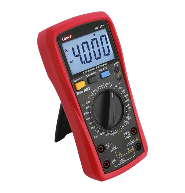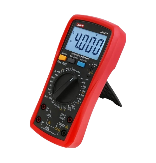 El multímetro UNI-T UT105+ es una herramienta esencial para técnicos automotrices y aficionados al bricolaje. Este multímetro de alta precisión ofrece una amplia gama de funciones para medir voltaje CA y CC, corriente CA y CC, resistencia, continuidad, diodos, ángulo de permanencia, RPM, ciclo de trabajo y prueba de batería.