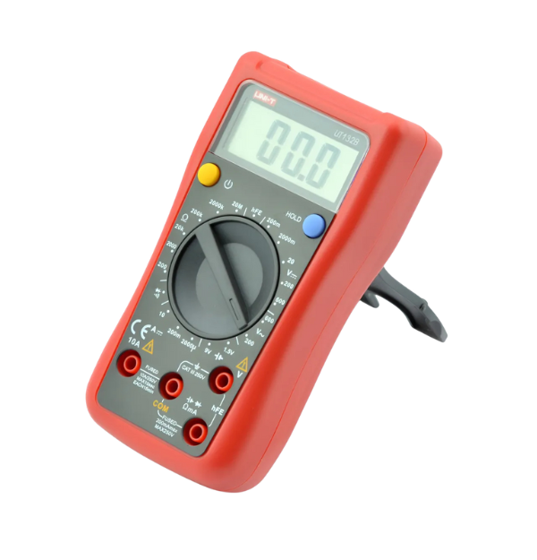 El UNIT-T UT132B es un multímetro digital compacto y confiable, diseñado para ofrecer mediciones básicas de voltaje, corriente, resistencia, capacitancia, frecuencia y temperatura. Su función de rango automático simplifica el proceso de medición al seleccionar automáticamente la escala adecuada, lo que lo hace ideal tanto para principiantes como para usuarios experimentados que necesitan una herramienta portátil para tareas eléctricas y electrónicas generales. Incorpora protección contra sobrecarga en todos los rangos y un diseño robusto para mayor durabilidad.