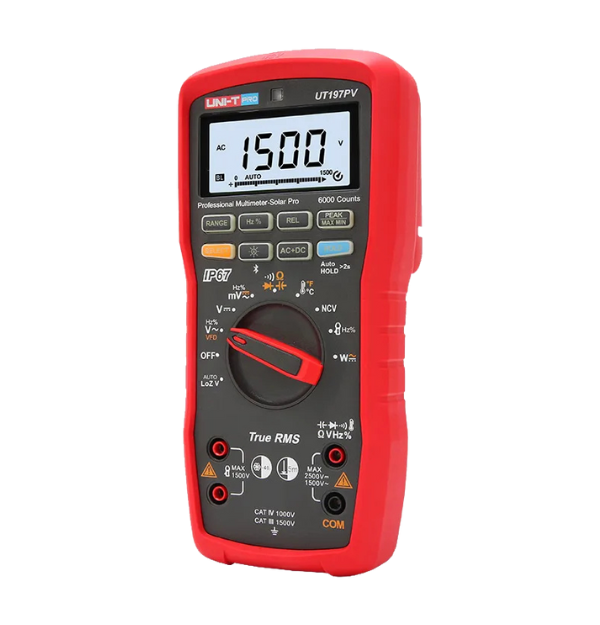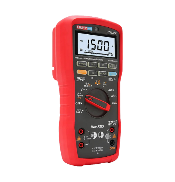 El UNI-T UT197PV es un multímetro digital de mano de alta precisión diseñado específicamente para los profesionales de la energía solar (fotovoltaica) y entornos industriales severos. Se distingue por su inigualable robustez y su alta clasificación de seguridad, que le permite medir con precisión en sistemas de alto voltaje y en condiciones climáticas extremas.