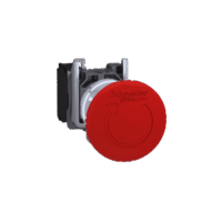 Su diseño robusto y compacto, combinado con materiales de alta calidad, lo hacen ideal para entornos exigentes. La cabeza en forma de seta de 40 mm y color rojo proporciona una alta visibilidad, facilitando su identificación en situaciones de estrés.